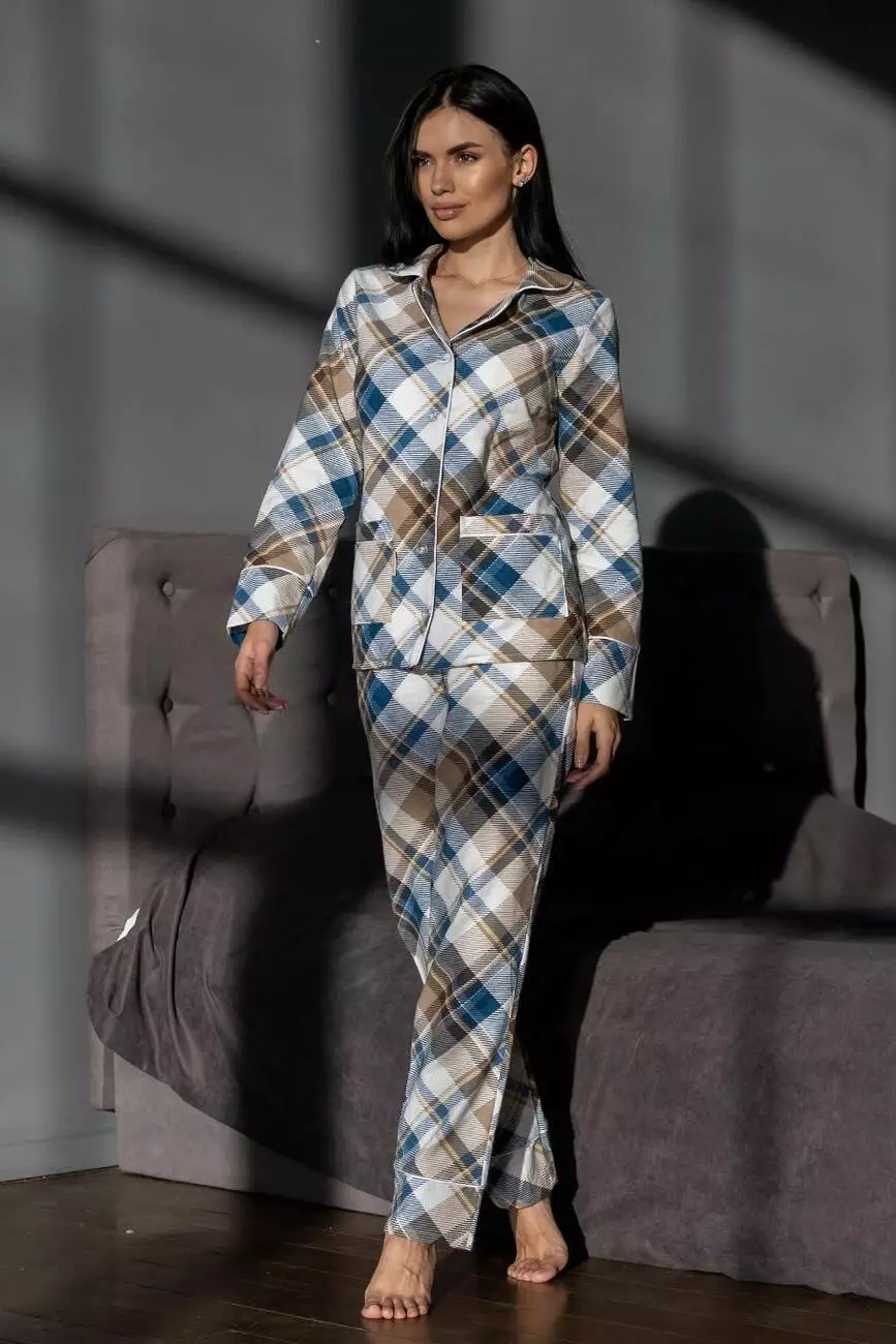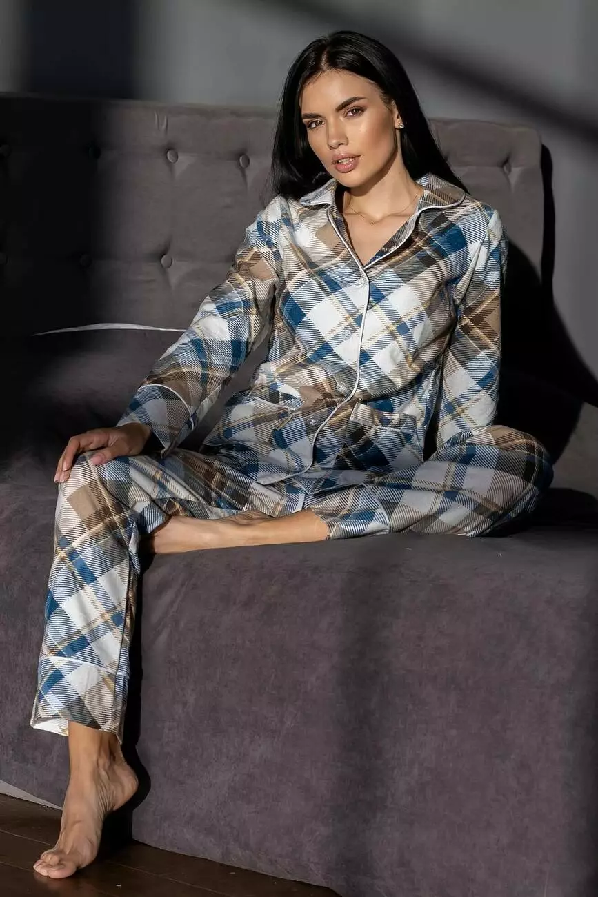 Бавовняна піжама брючна П1001 Клітинка синя