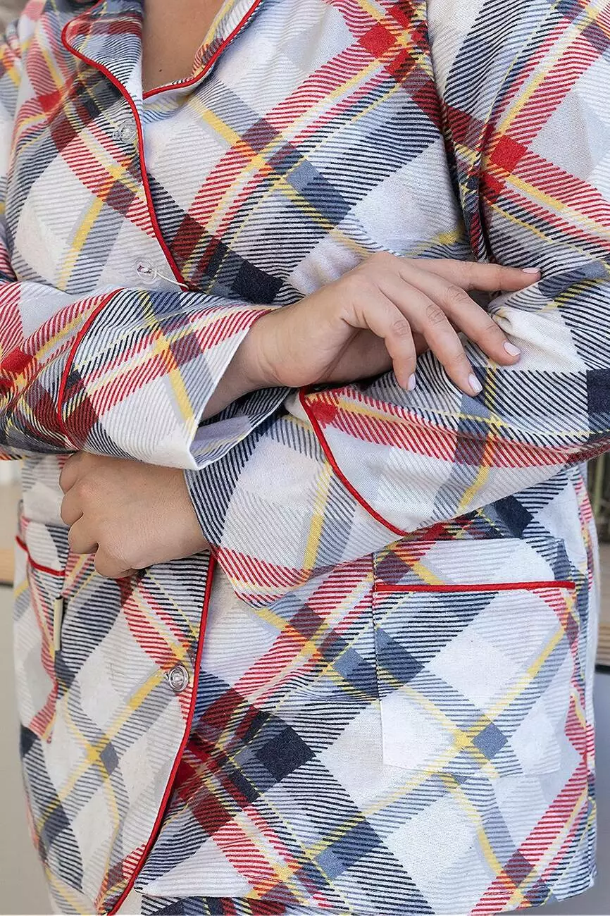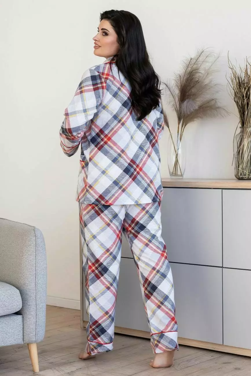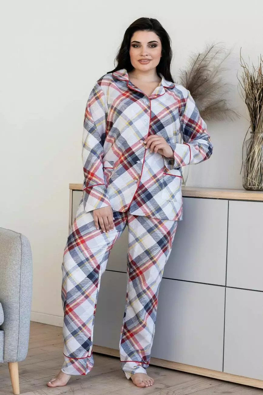 Бавовняна піжама брючна XXL+ П1000 Клітинка червона коса