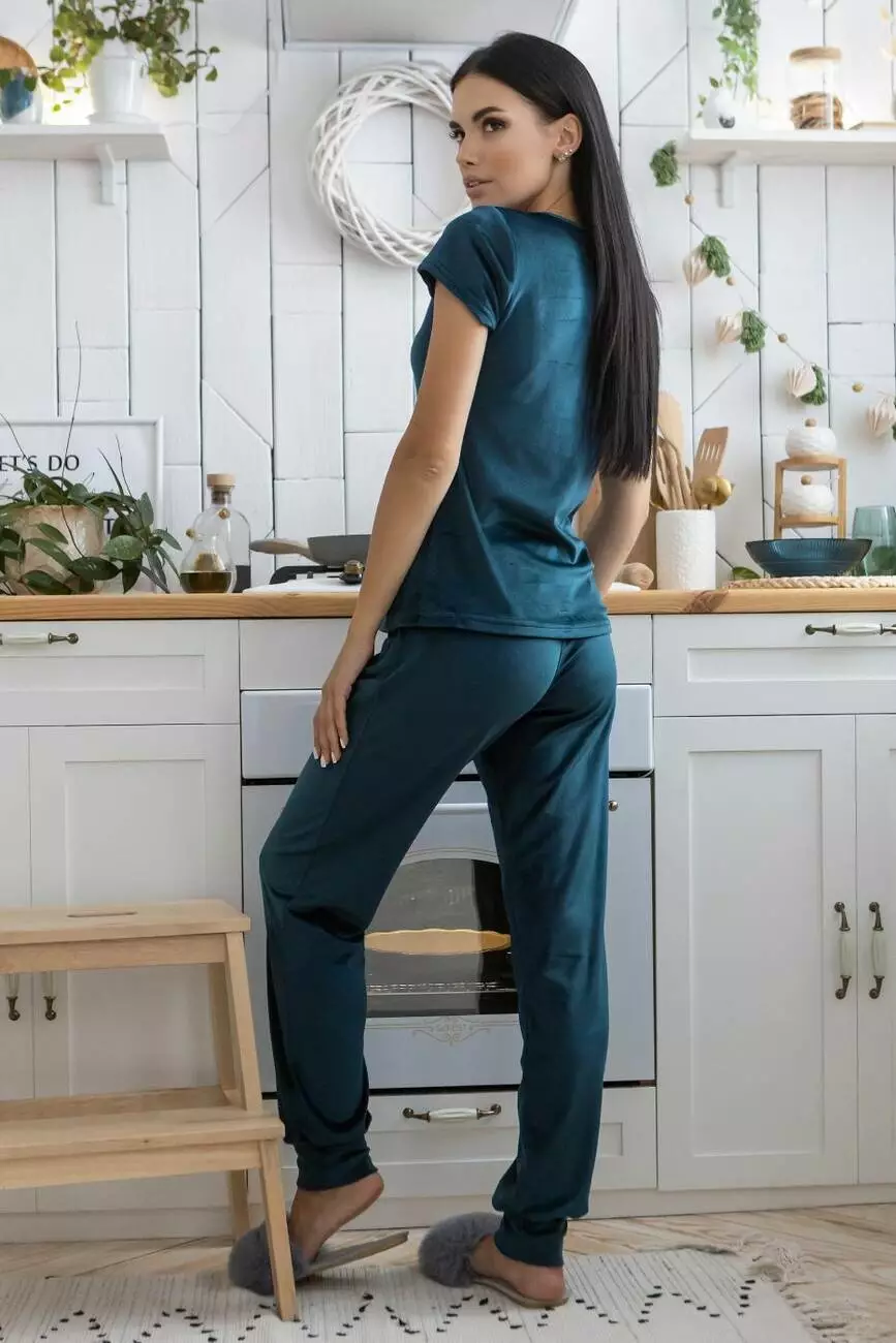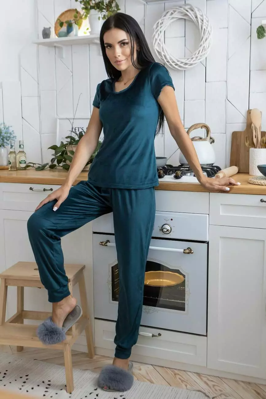 Брючна піжама велюрова Пб1605 Тепло-зелений