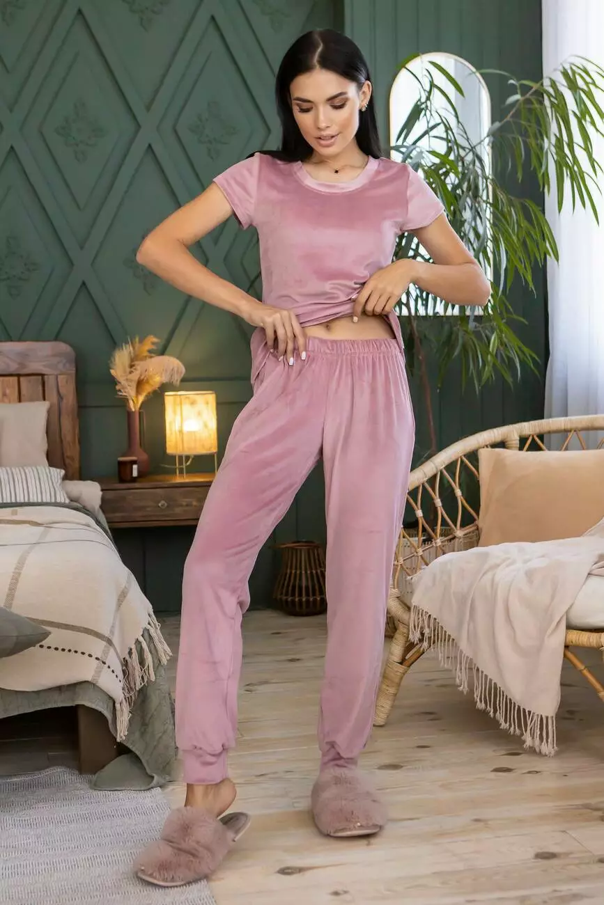 Велюровий набір з футболки та брюк - це можливість розкішно виглядати вдома, відчувати себе комфортно та зручно. Це робить його чудовим вибором для домашнього образу.