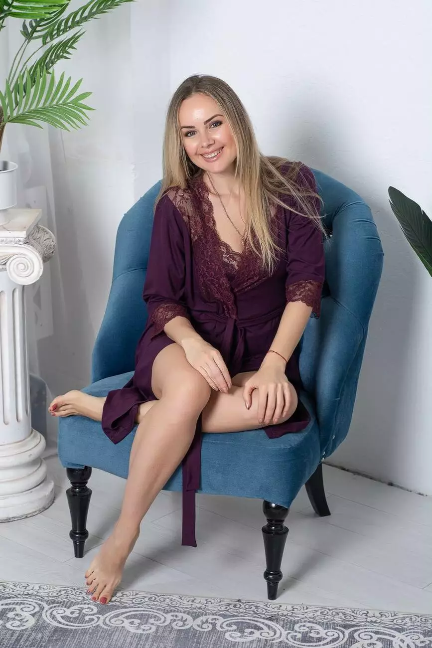 Домашній комплект халат з сорочкою Кс1111н Сливовий