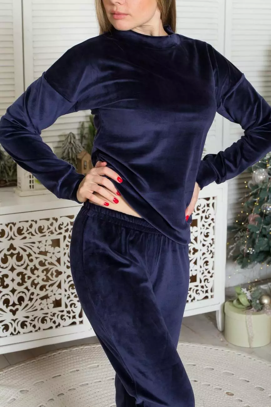Домашній комплект велюровий кофта зі штанами П1500 Т.синій