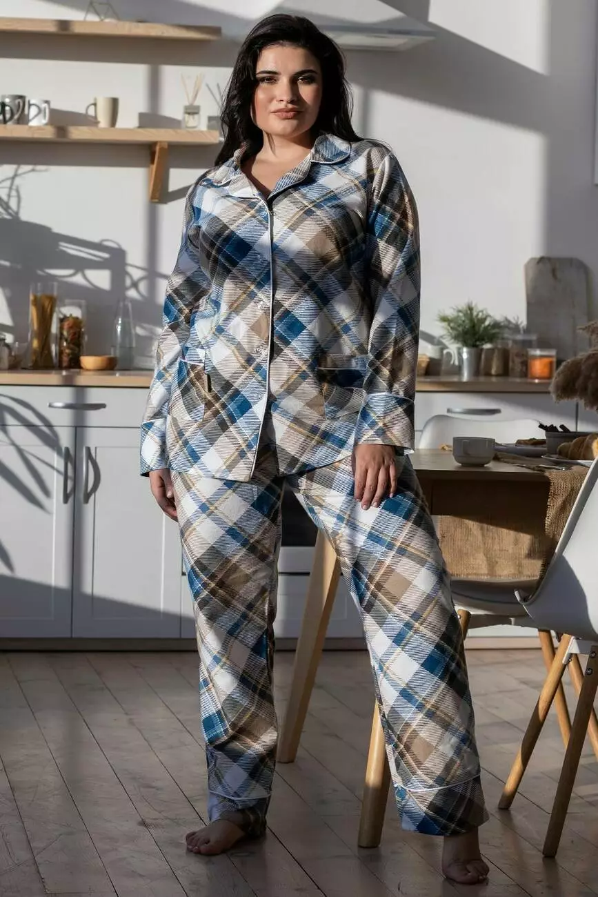 Фланелева піжама XXL+ П1001 Клітинка синя