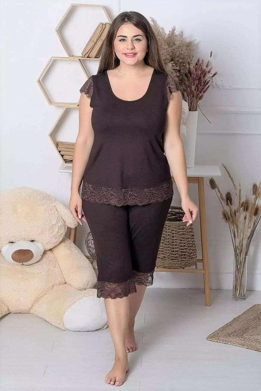 Жіноча піжама з бавовни Пш1113 складається з капрів та футболки.