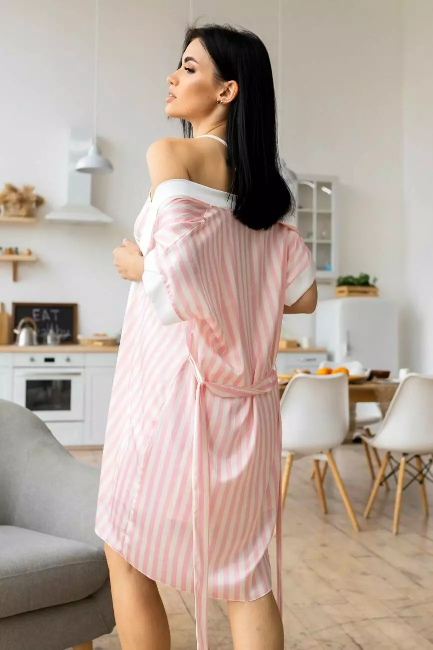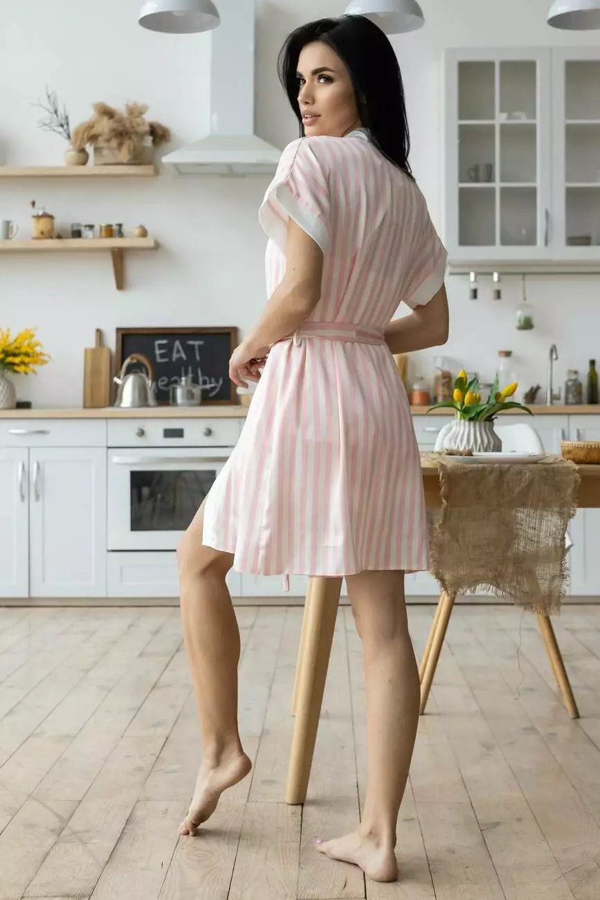 Халат легкий з коротким рукавом Х1902 Світла смужка