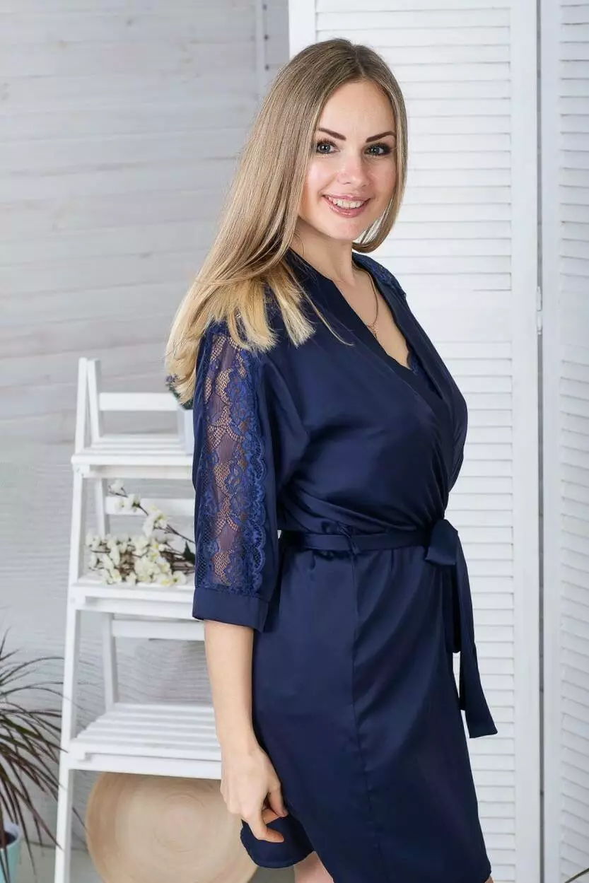 Жіночий шовковий халат із мереживним рукавом.