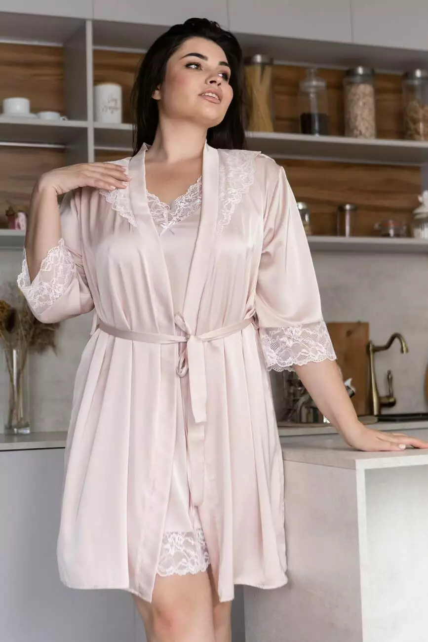 Сексуальний жіночий мереживний халат для дому. Колір – мокко.