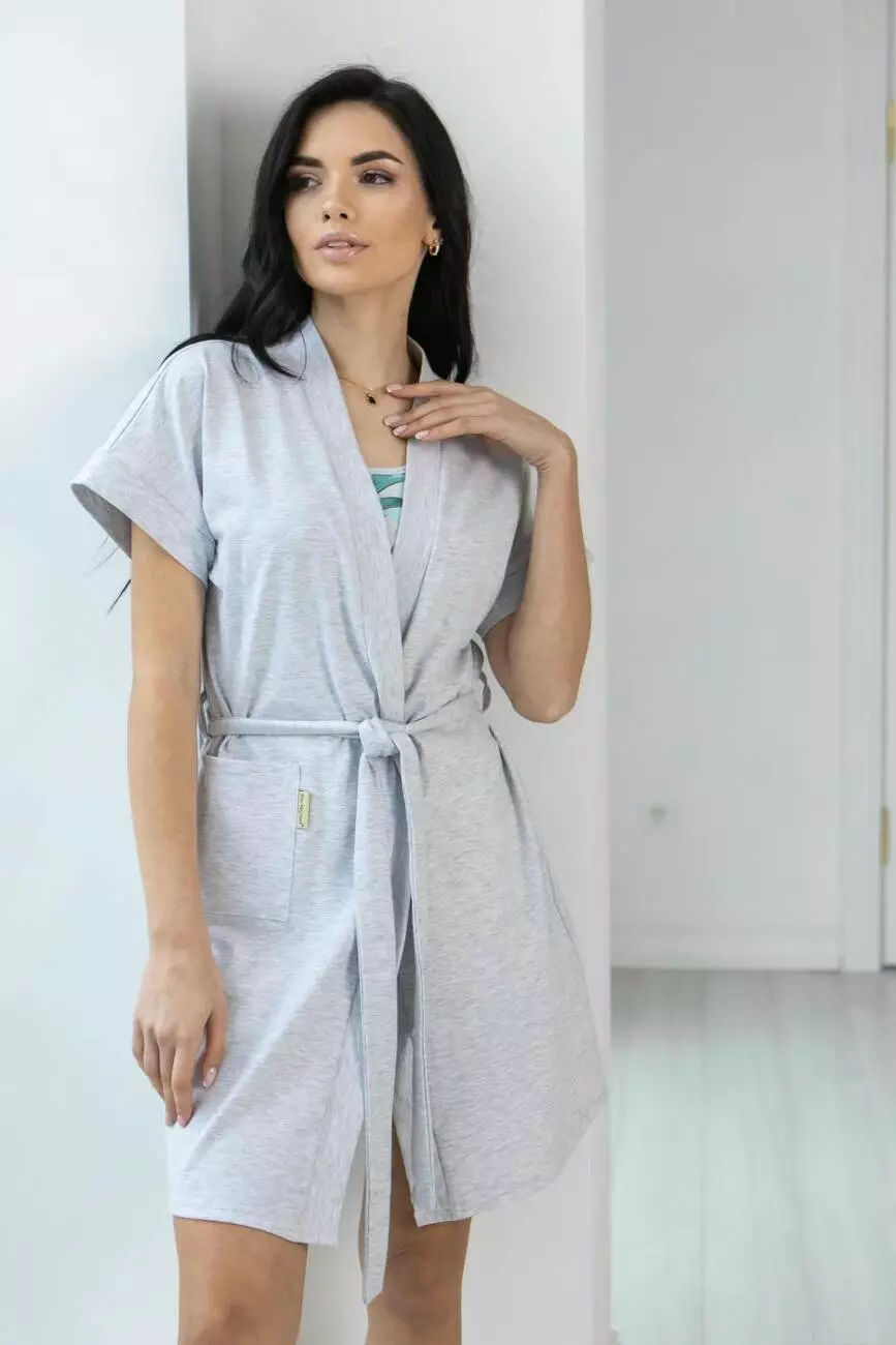 Лаконічний однотонний халат із коротким рукавом.