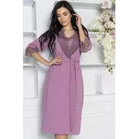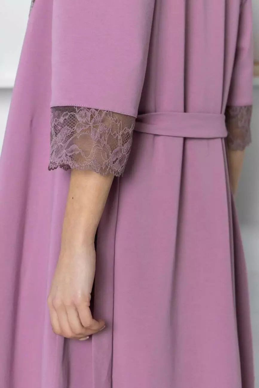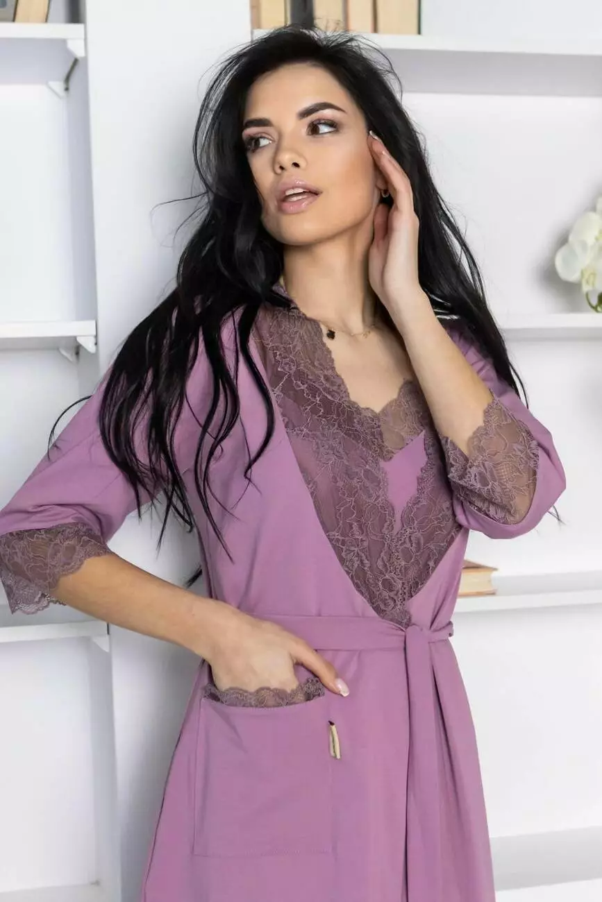 Лаконічний однотонний халат для дому з мереживом на рукавах і