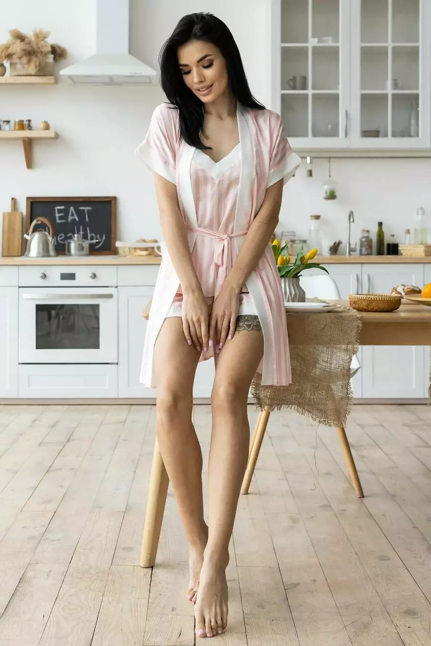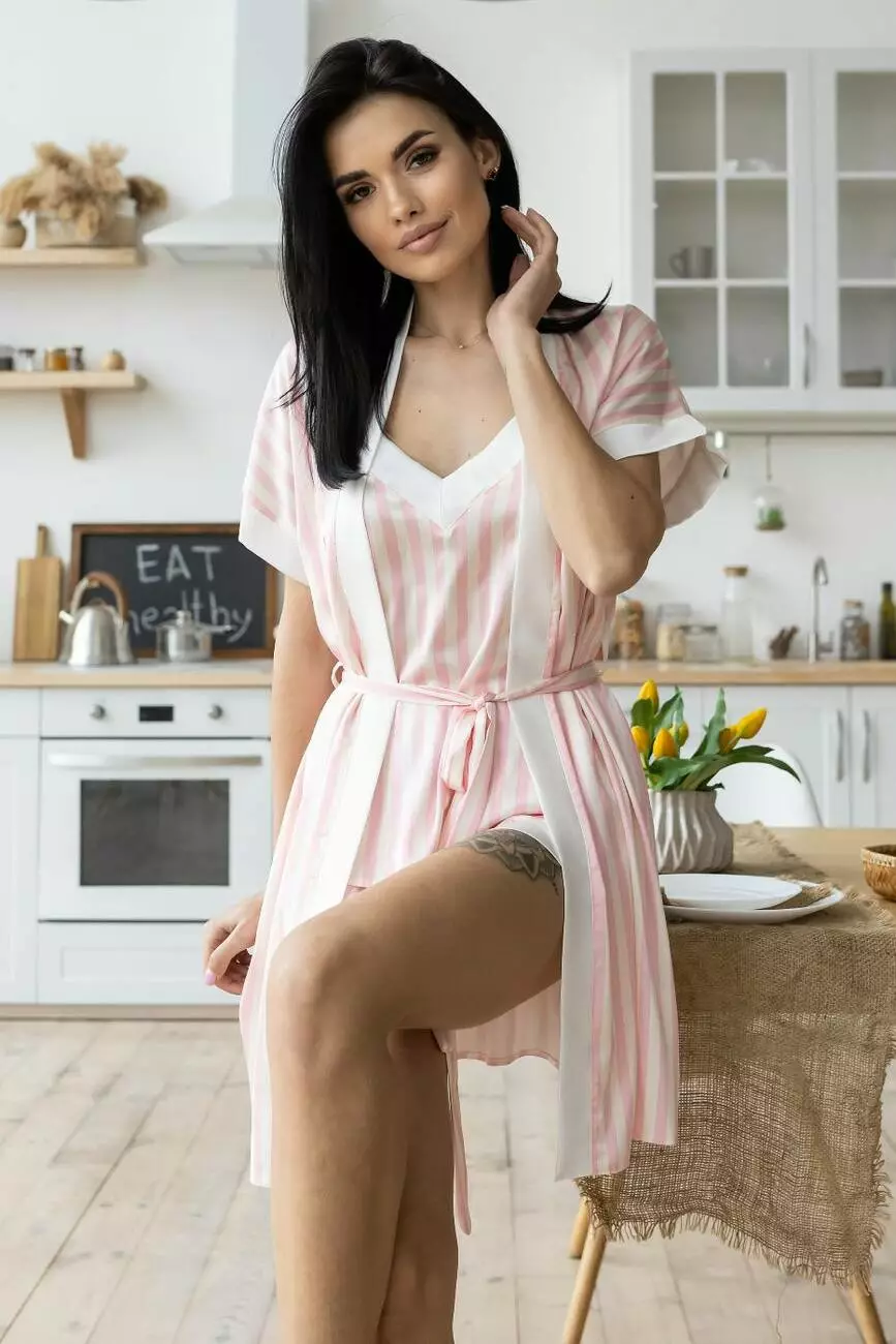 Халат з піжамою ніжний К1900п Світла полоска