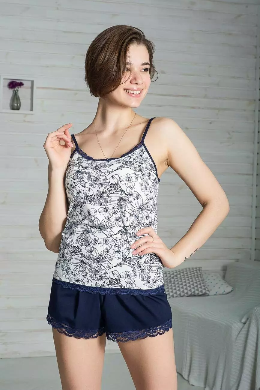 Жіноча піжама майка на тонких бретельках із шортиками.