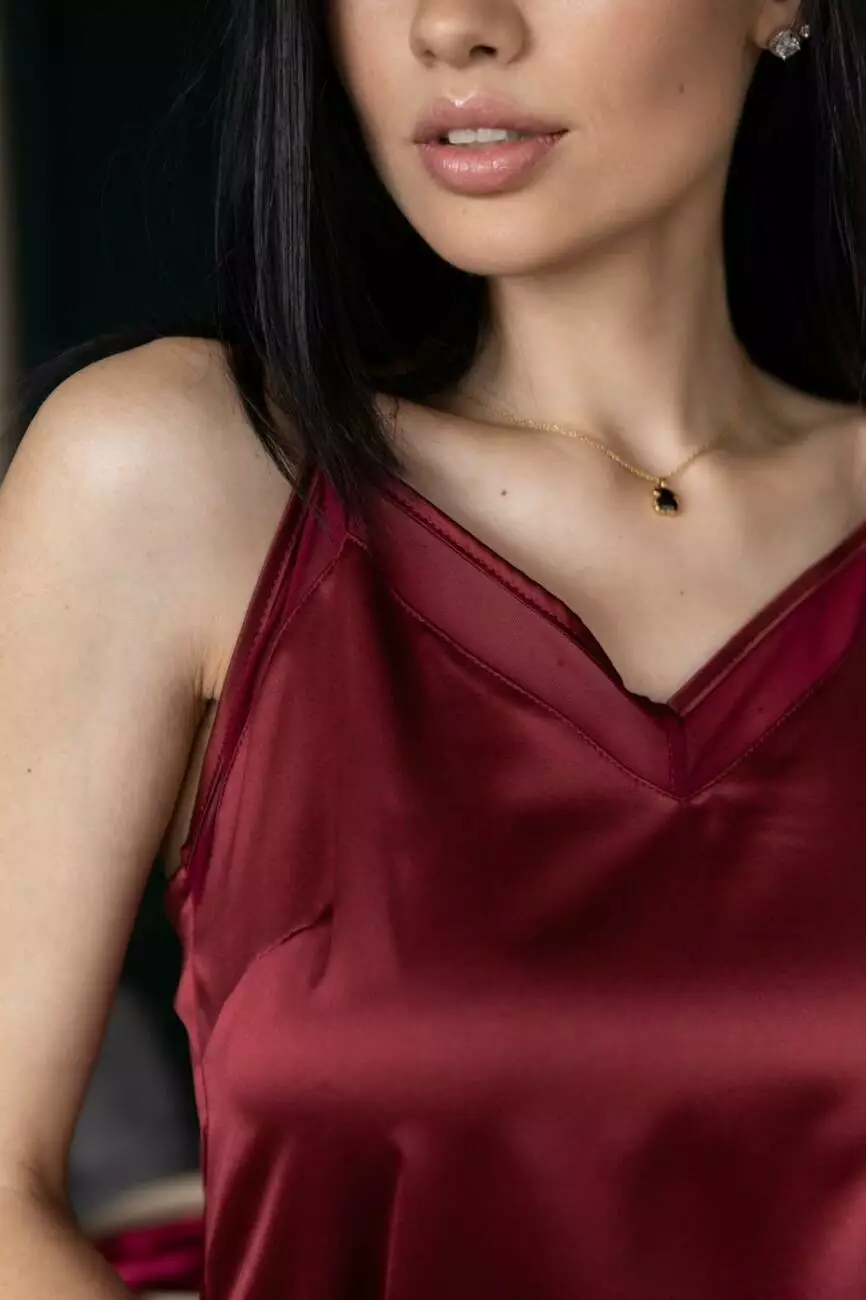 Бретельки тонкі, легко регулюються. Поділ сорочки також декорований