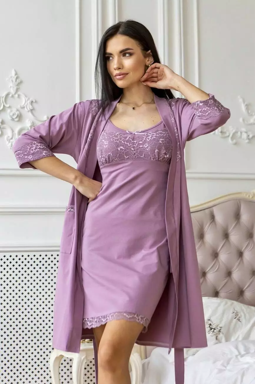 Халат однотонний прикрашений мереживом. Довжина халату – від 85 см,
