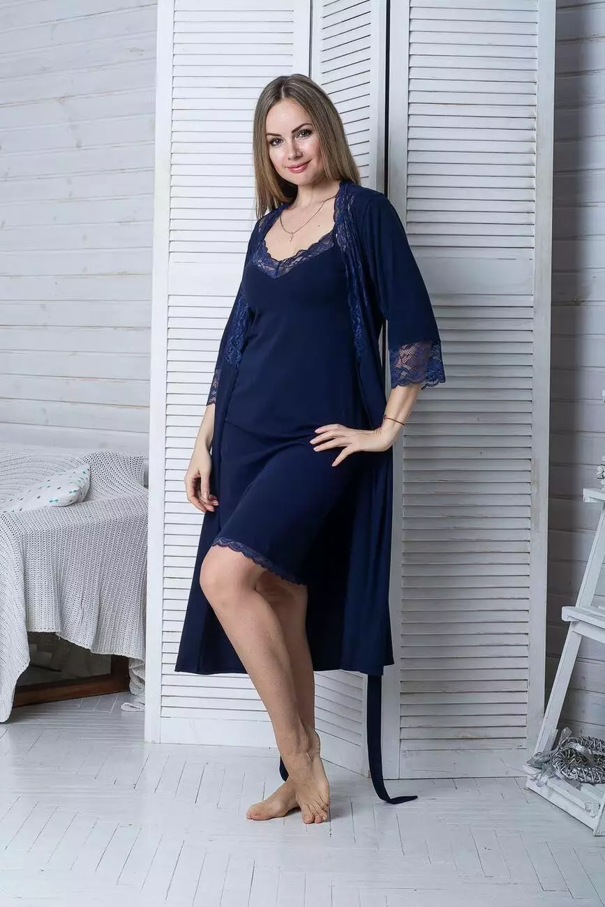 Однотонний домашній комплект - халат та нічна сорочка К1111н