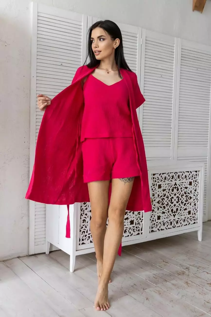 Комплект халат з піжамою натуральний К1808п Малиновий