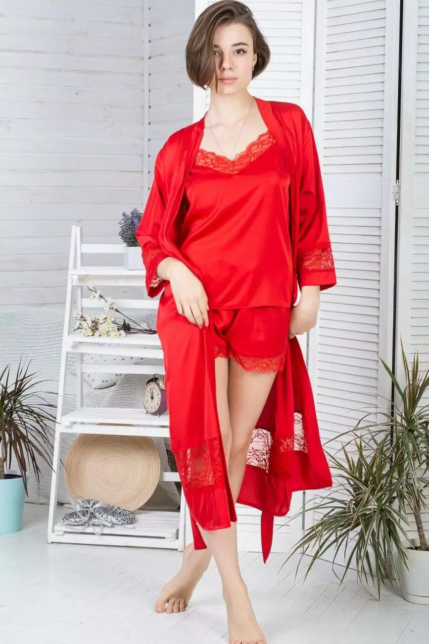 Матеріал – штучний шовк. Довжина халату 110 см, рукав 3/4.