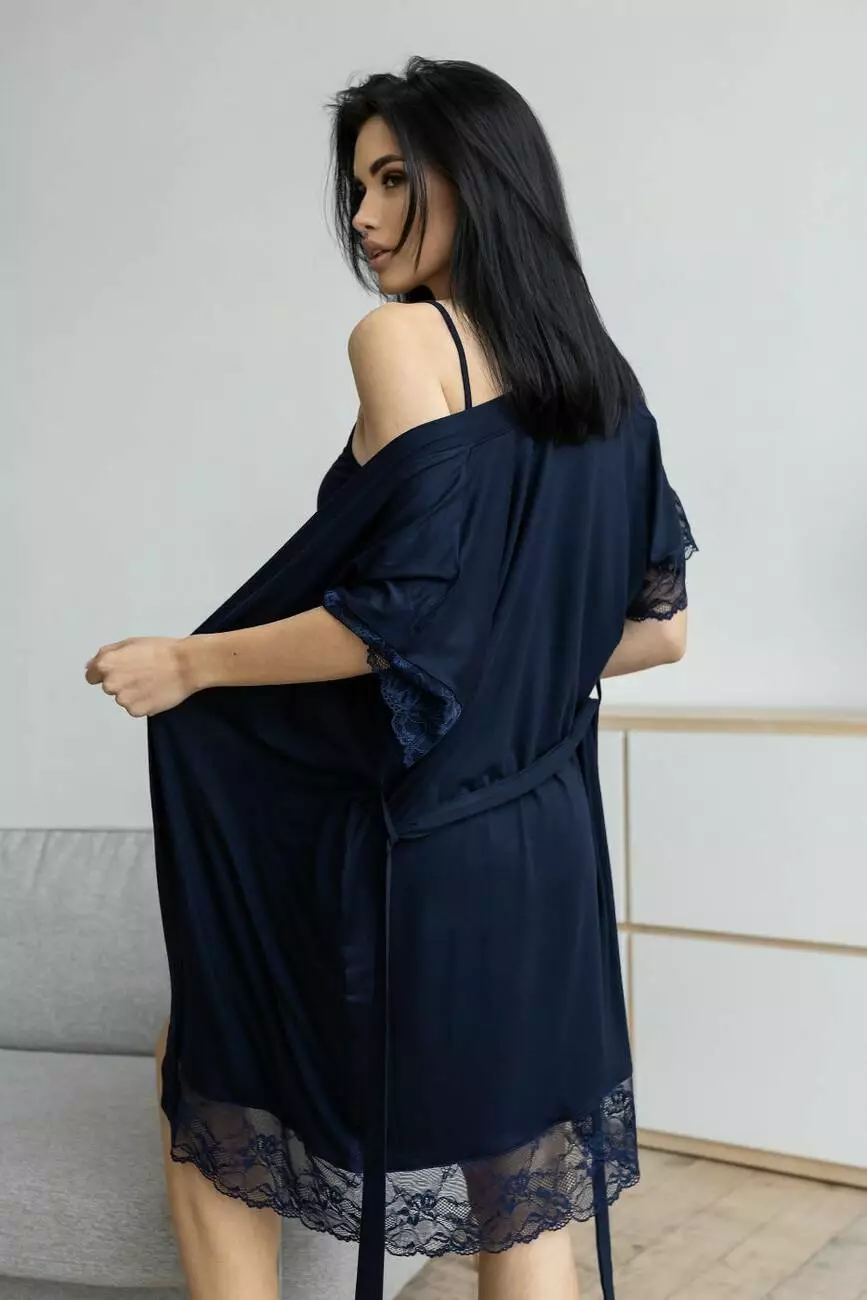 Нічна сорочка комплекту має тонкі бретельки, що регулюються.