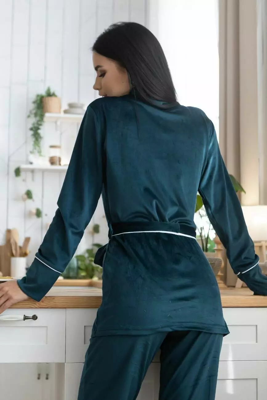 Комплект з кардіганом велюр Кб1424 Темно-зелений