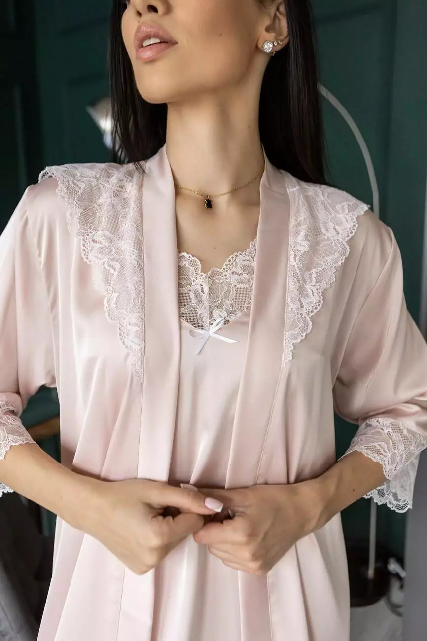 Виконаний зі штучного шовку, декорований гарним мереживом в тон