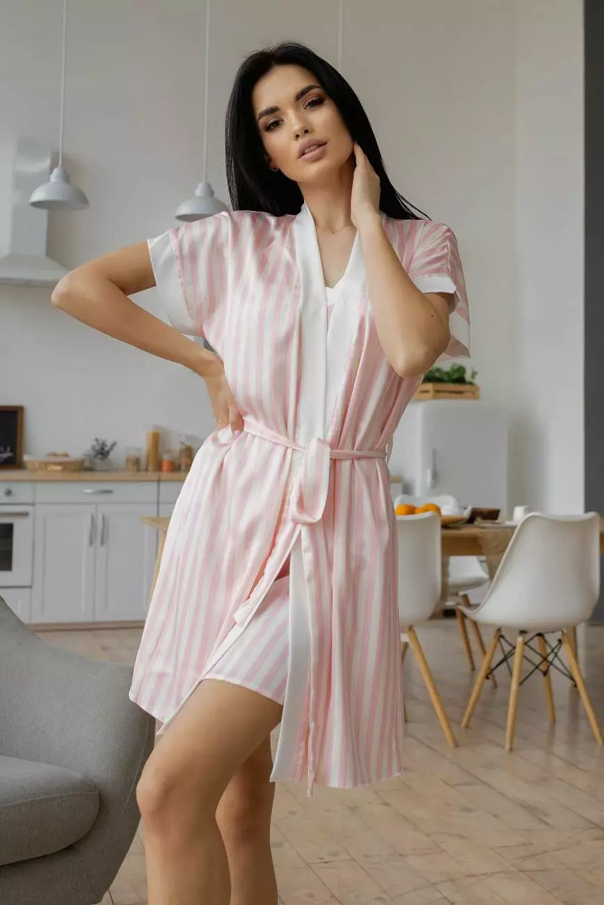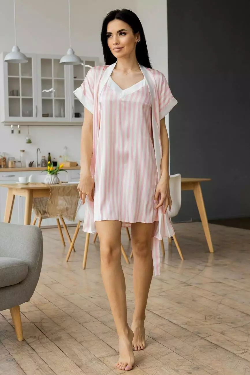 стильний домашній комплект - нічна сорочка та халат з коротким