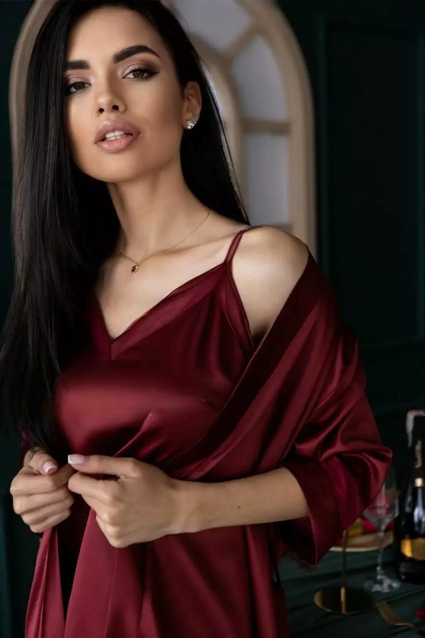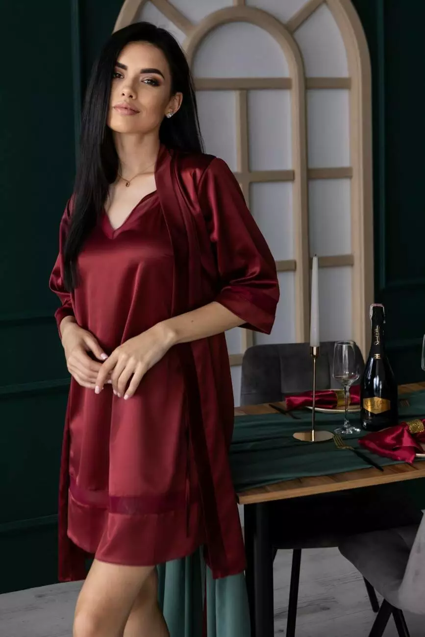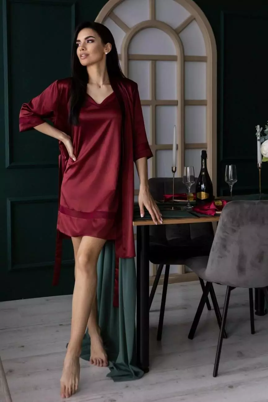 Складається з нічні на тонких бретельках і халата середньої довжини.