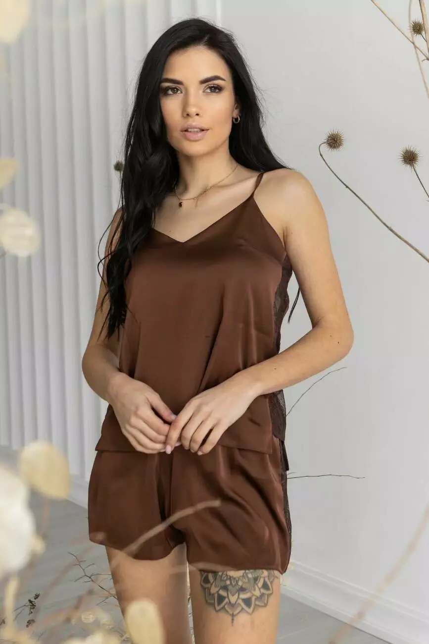 Шовковий комплект для дому XXL+ Кш1017п Шоколадний