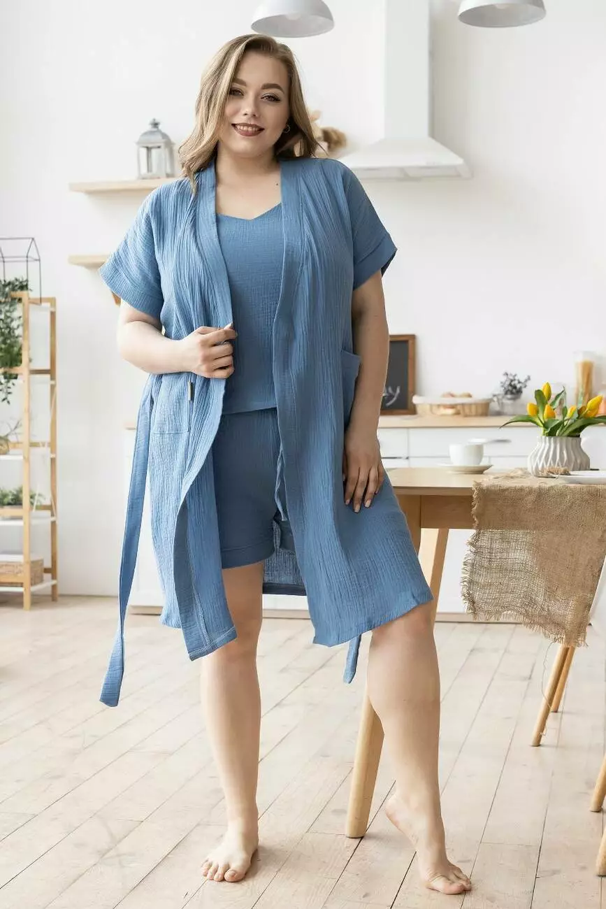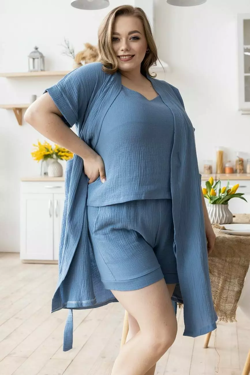 Комплект жіночий мусліновий XXL+ Кд1808п Джинсовий
