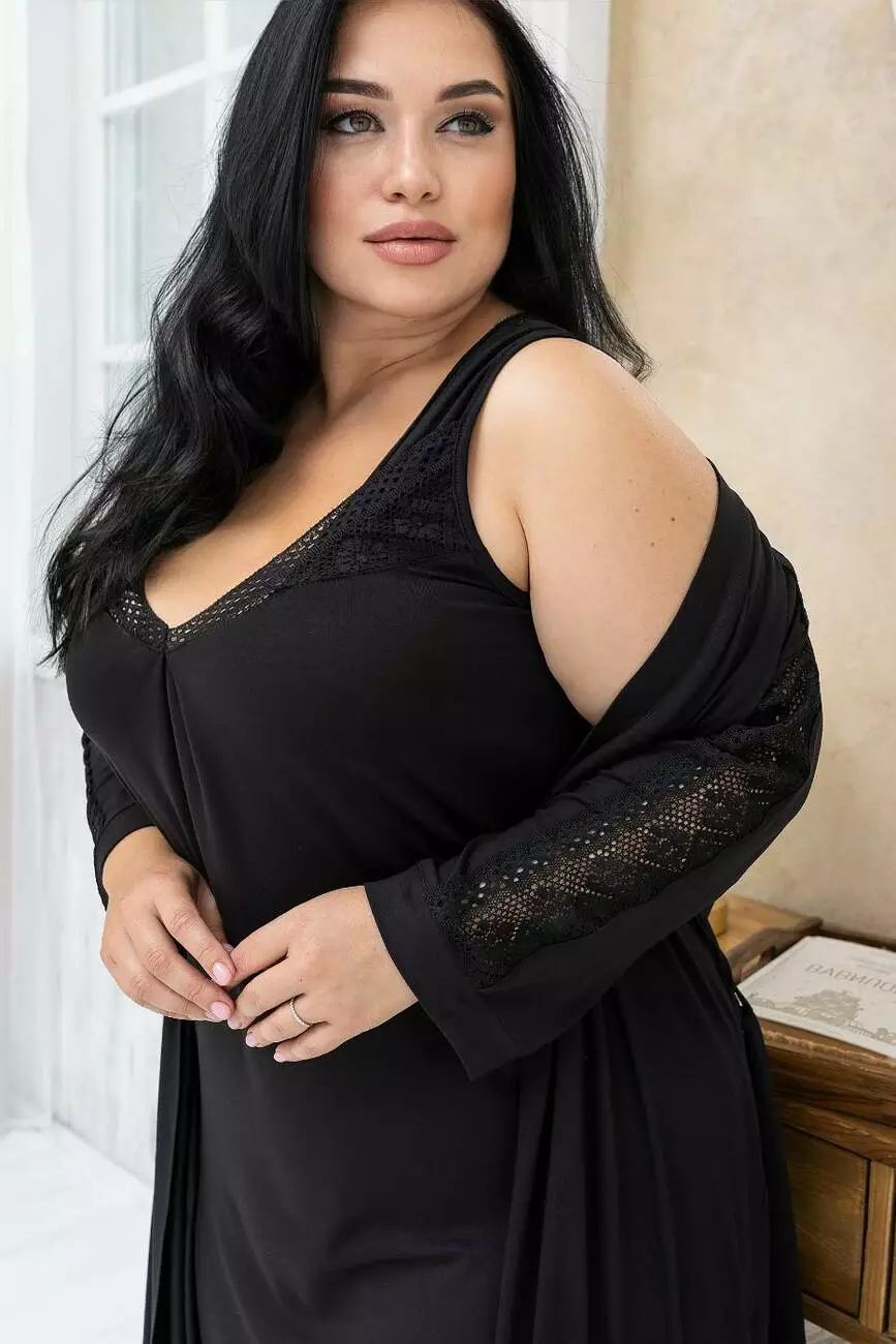 Нічна сорочка з комплекту має широкі бретелі, що дуже зручно у батальних розмірах.