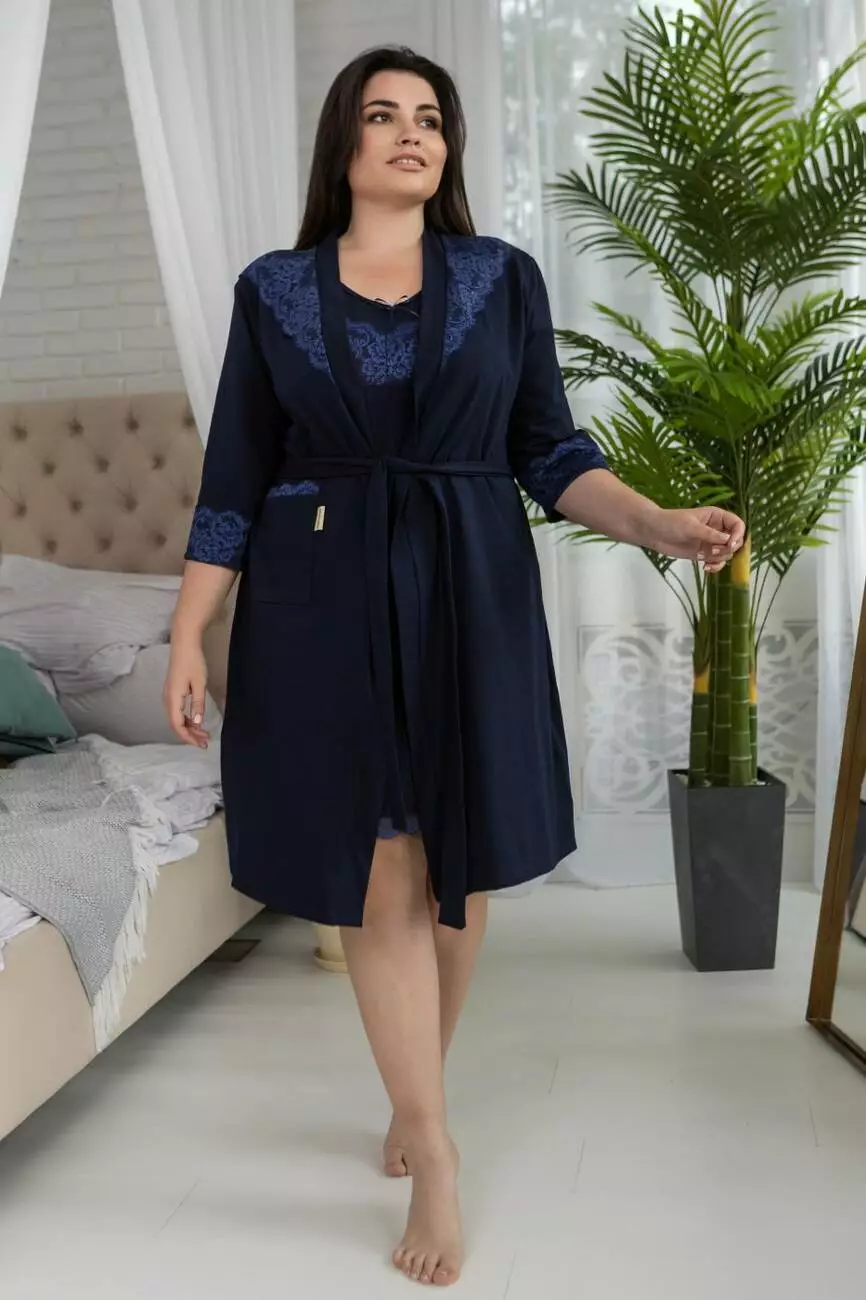 Халат однотонний прикрашений мереживом. Довжина халату – від 85 см, залежно від розміру.