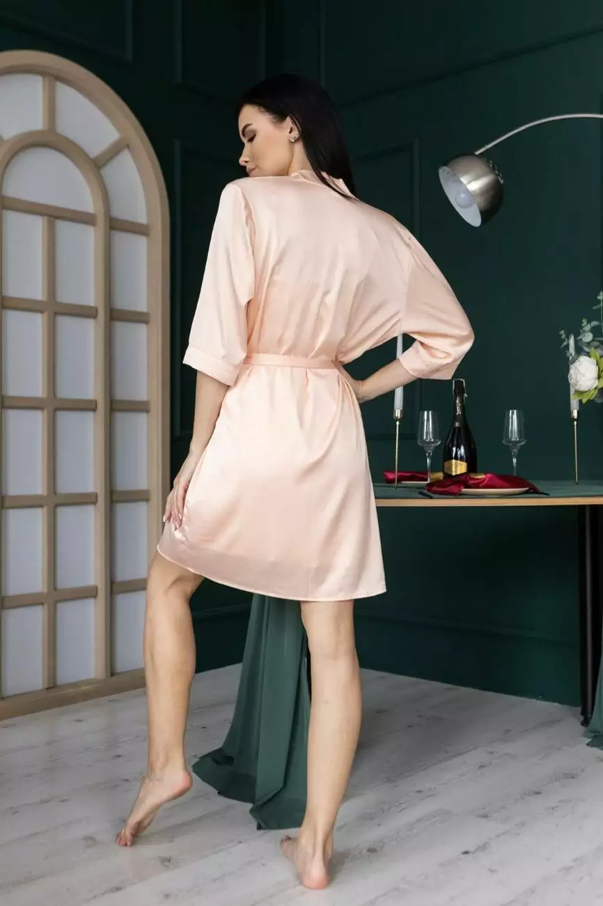 Однотонний халат шовковий Хп1071 Персиковий
