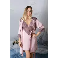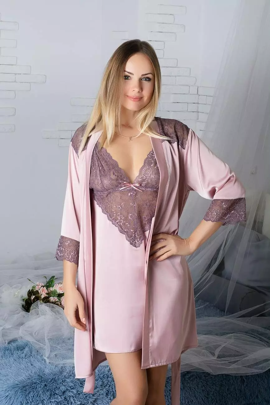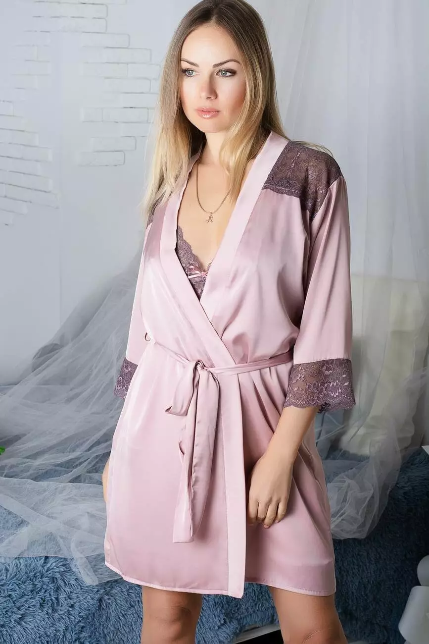 Довжина халату 85-90 см. Виконаний із штучного шовку.