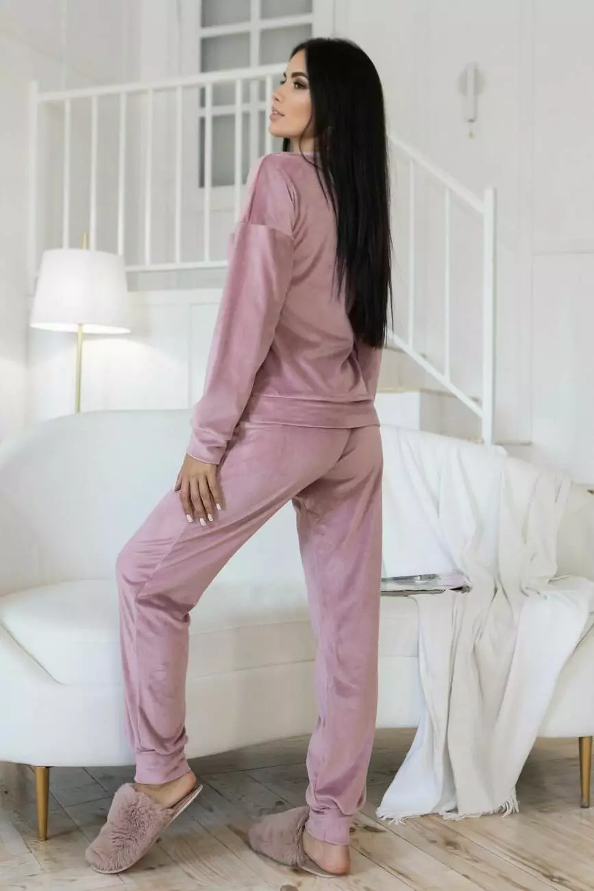 Жіноча тепла піжама брючна XXL Пп1500 Пудра