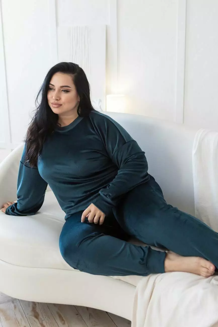 Піжама брючна з кофтою батал Пб1500 Темно-зелений