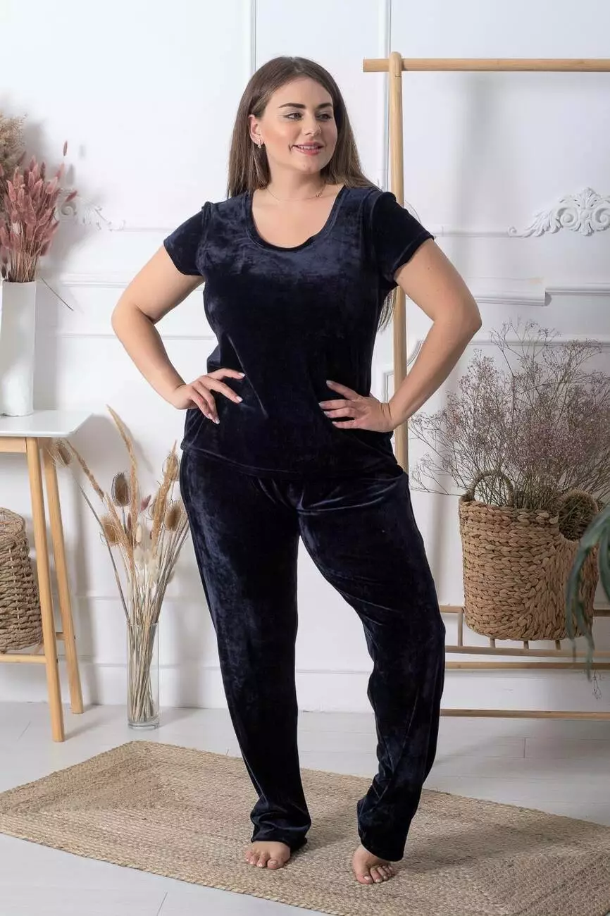 Піжама плюшева футболка та брюки XXL П1326 Темно-синій