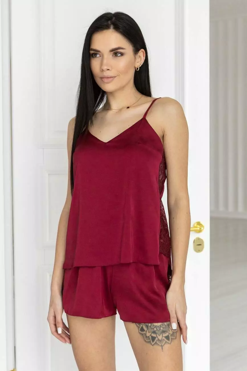 Збоку піжама декорована вставками з тонкого мережива.