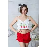 Піжама топік + шорти шовкова П1-04 Кактуси