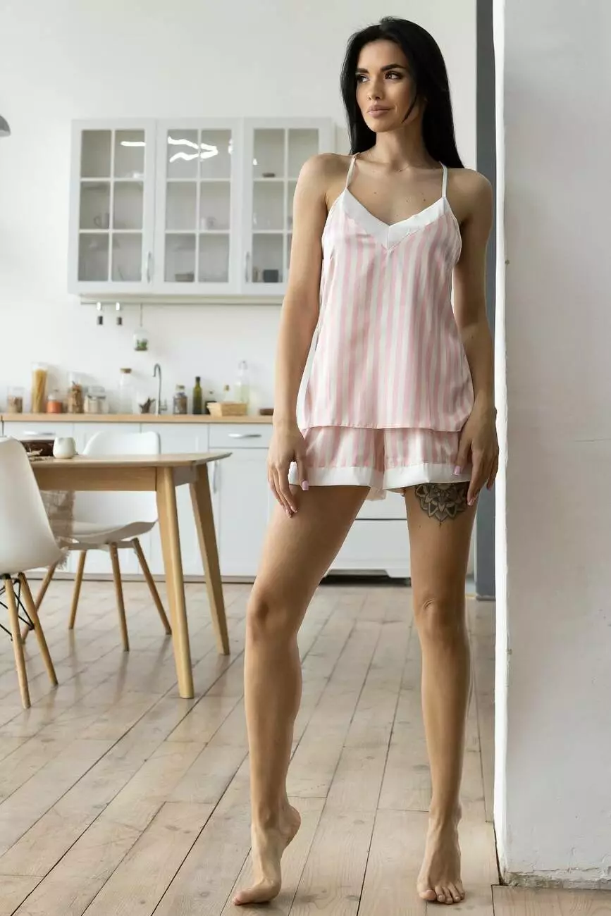 Піжама жіноча на тонких бретельках П1900 Рожева смужка
