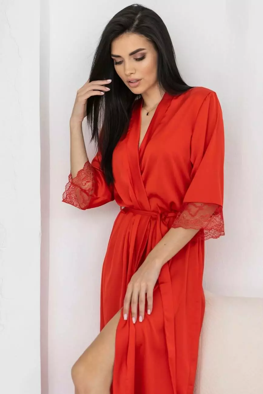 До того ж, халат прикрашений вишуканим мереживом, надаючи йому