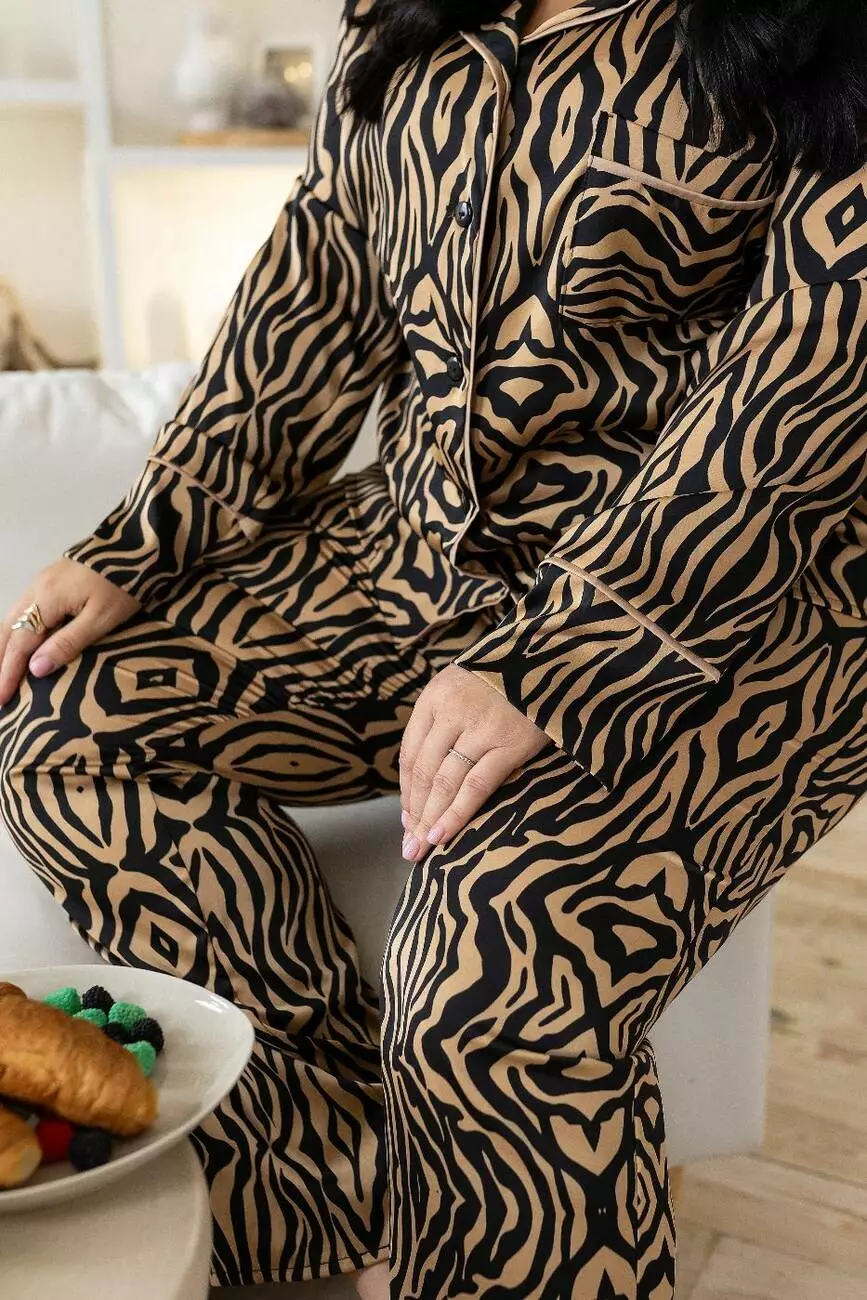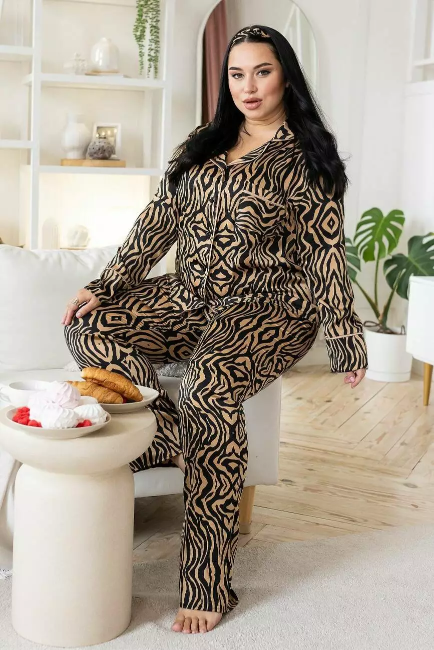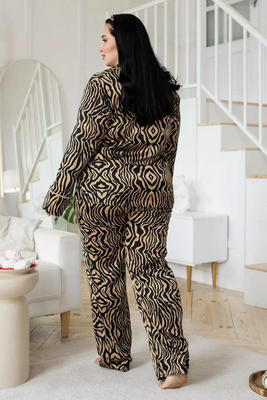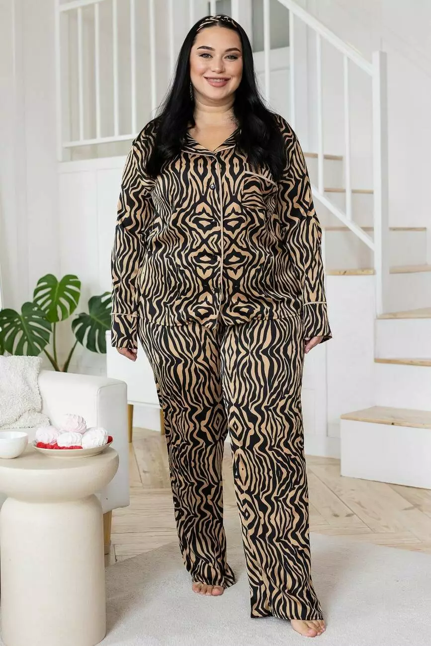 Шовкова брючна піжама XXL+ П600 Зебра беж