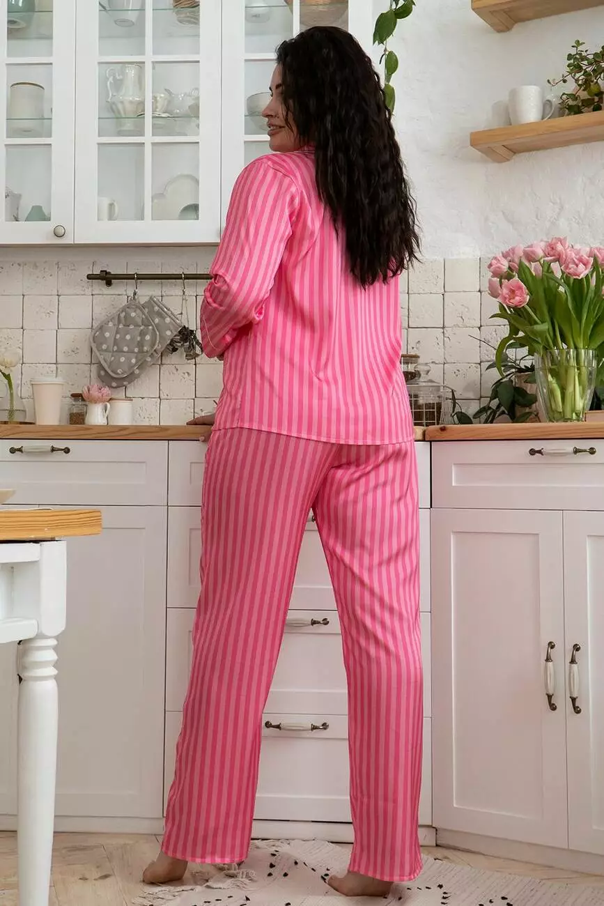 Шовкова піжама рубашка з брюками XXL+ Пм1400 Малиновий
