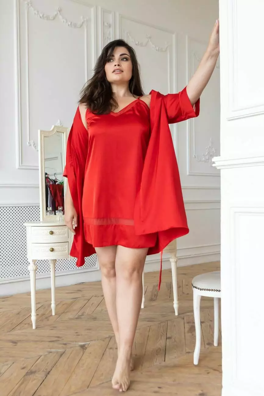 Шовковий комплект з сорочкою XXL+ Кк1091н Червоний