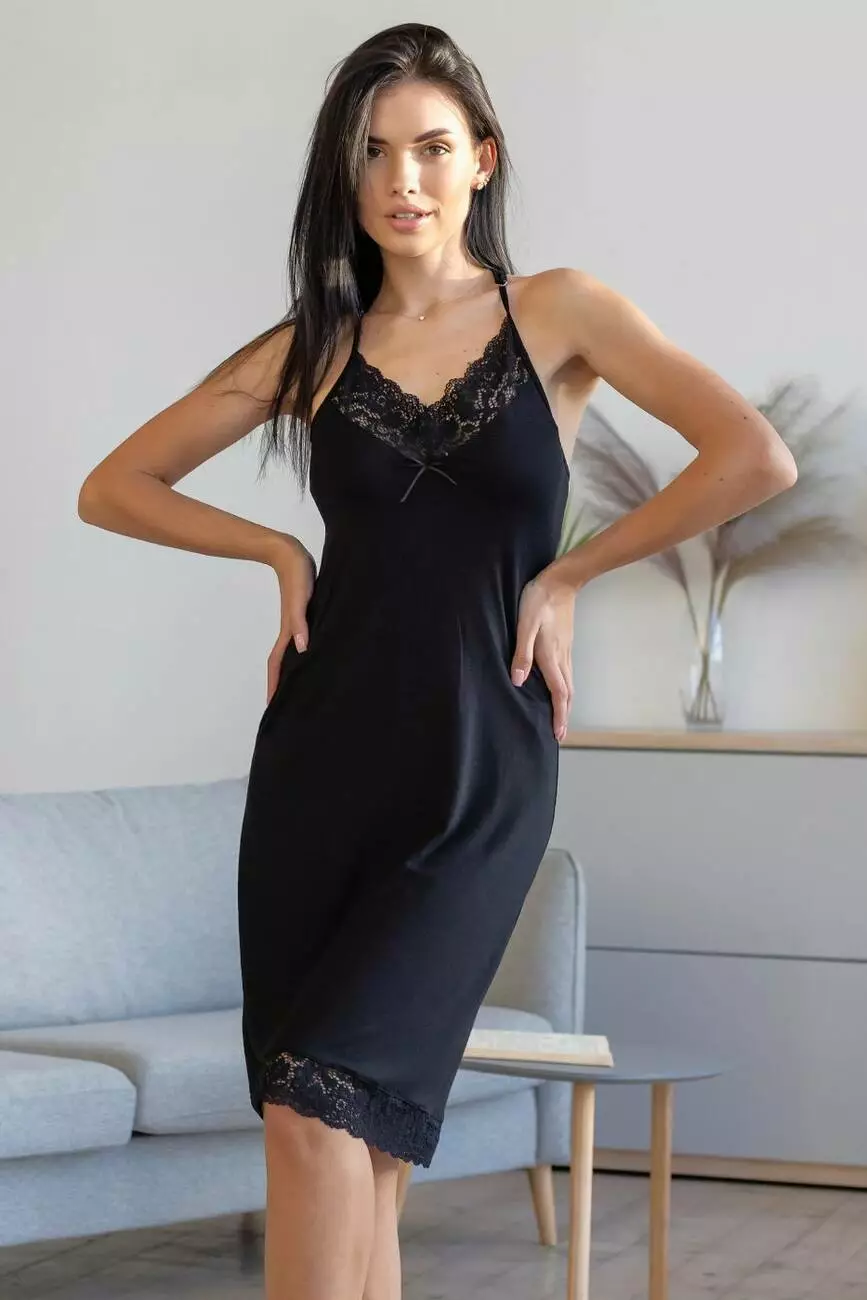 Сорочка мереживна з віскози Нч1200 Чорний