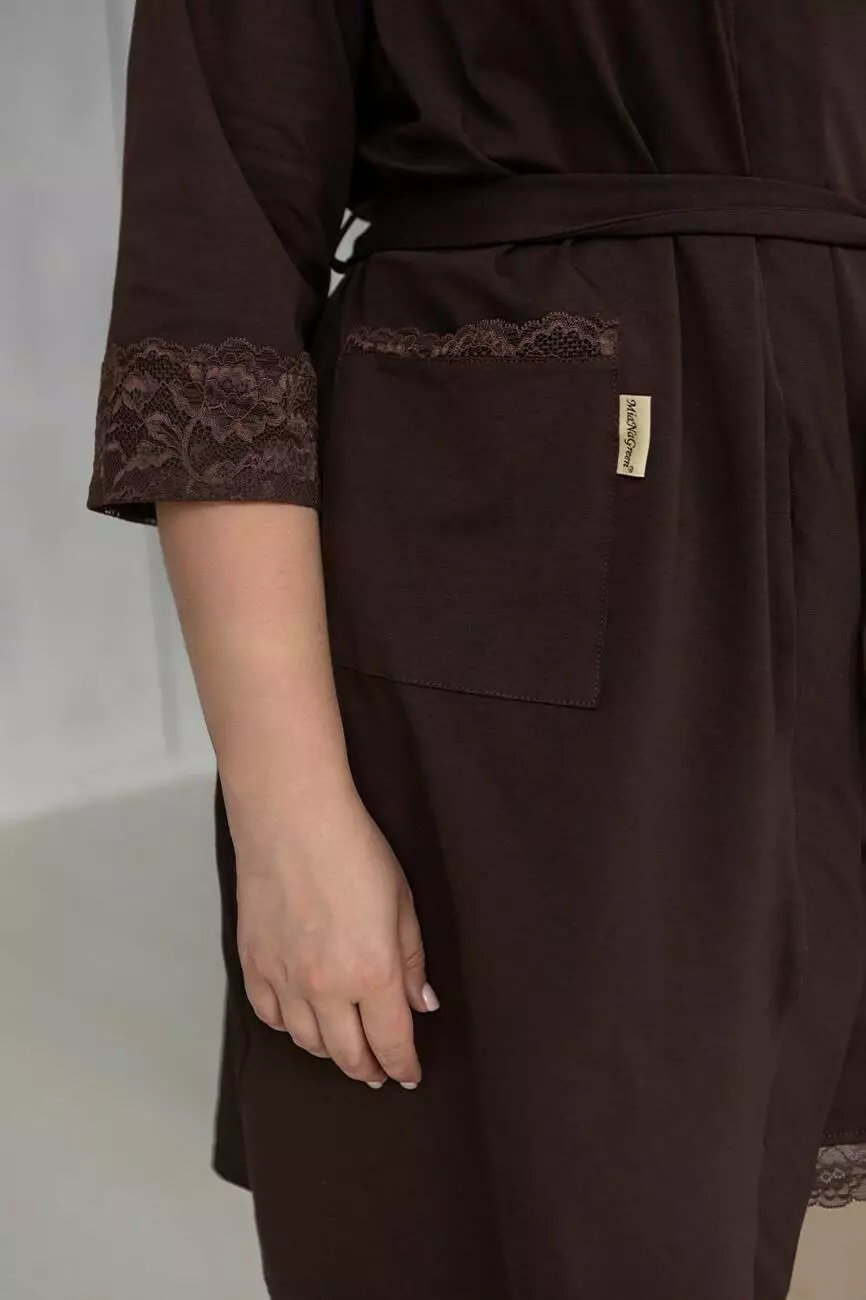 Халат однотонний прикрашений мереживом. Довжина халату – від 85 см,