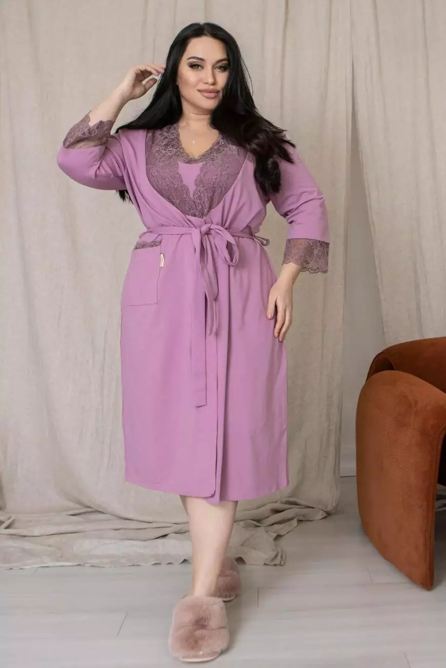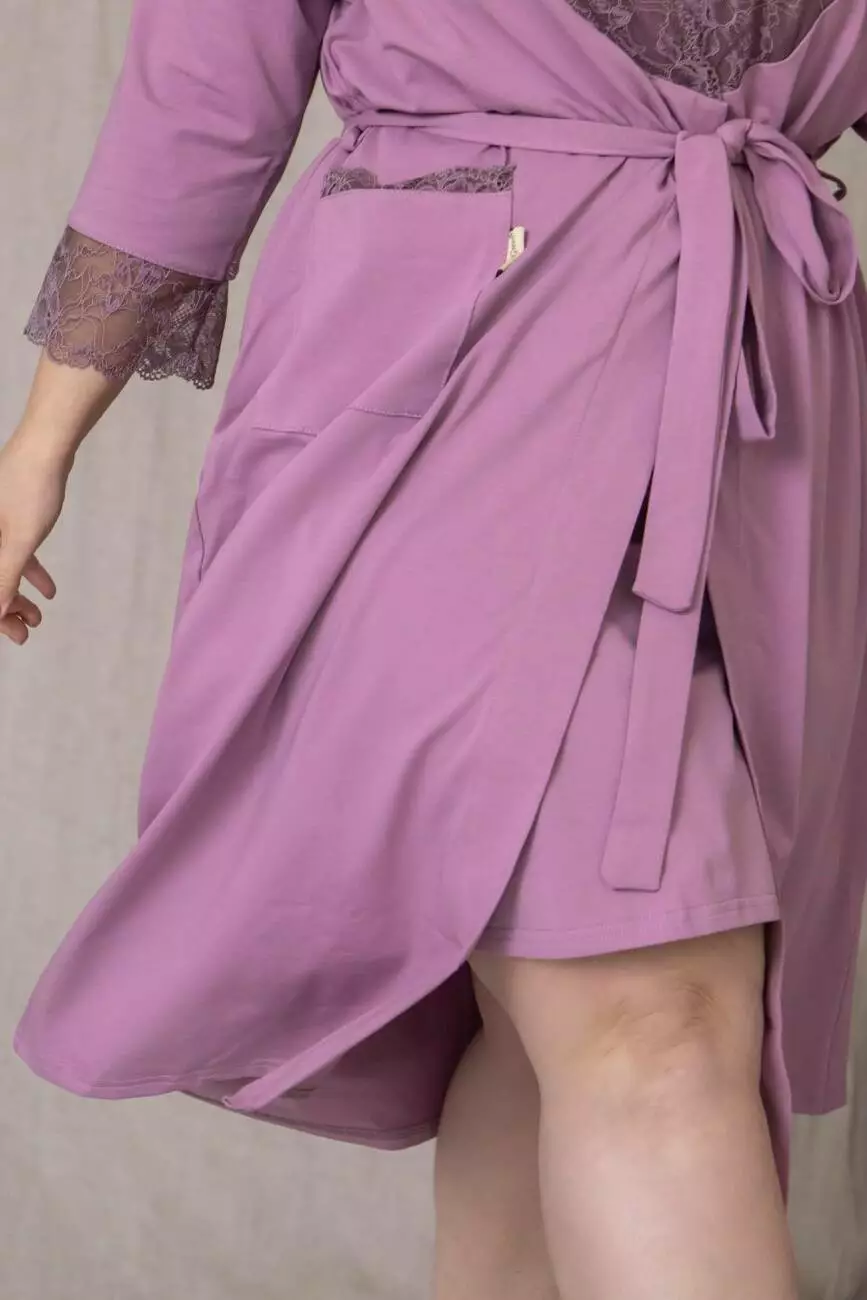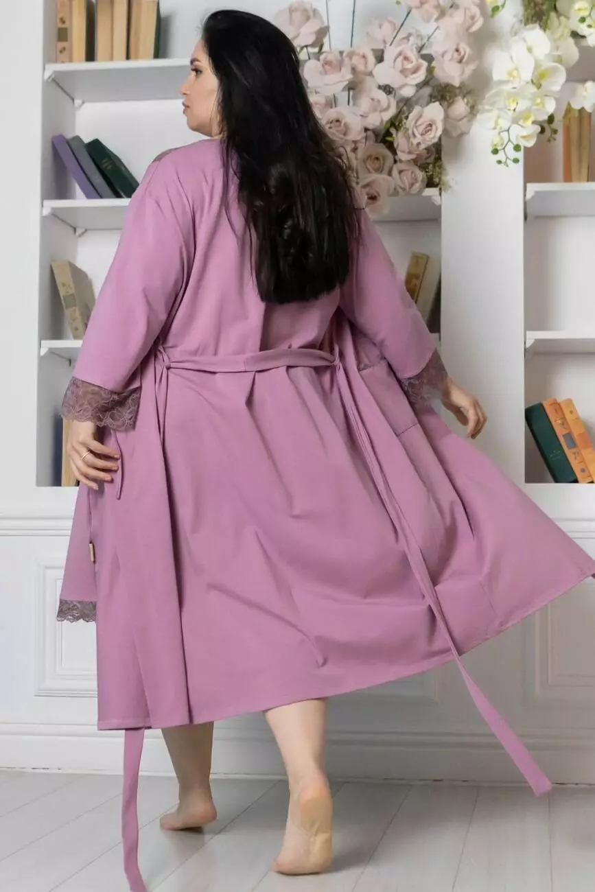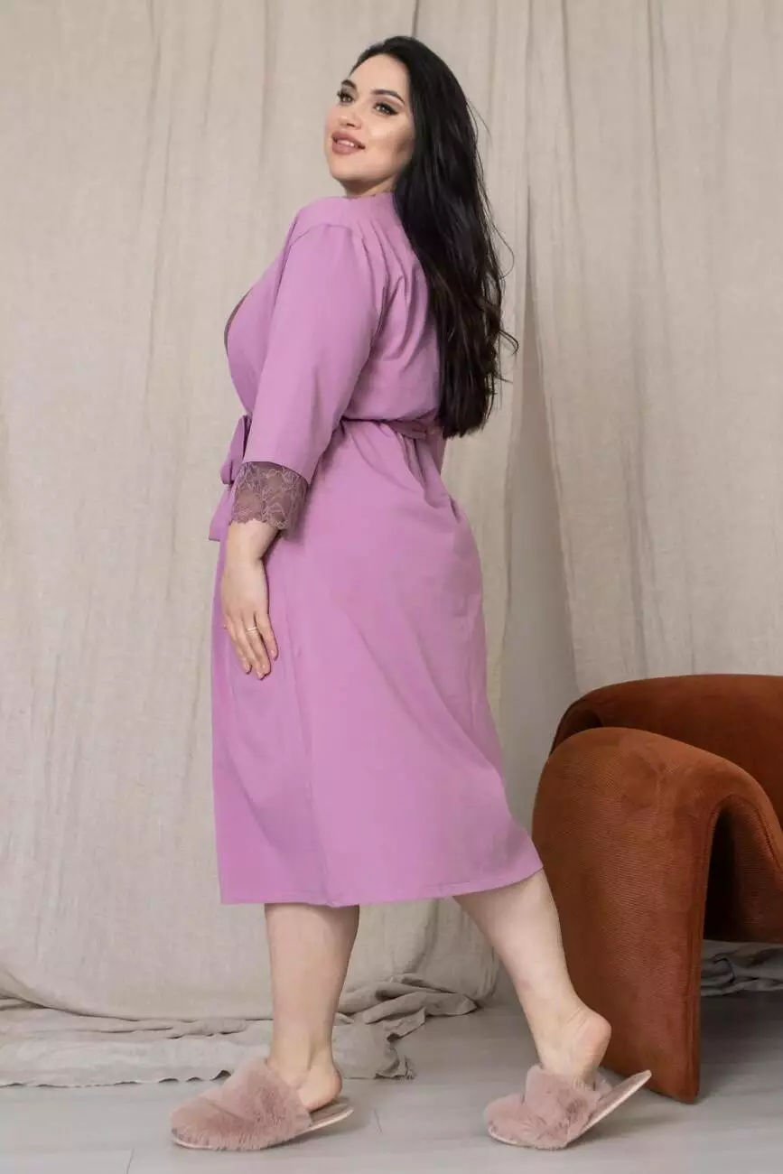 Стильний халат з мереживом Хф1112 XXL+ Фрезовий