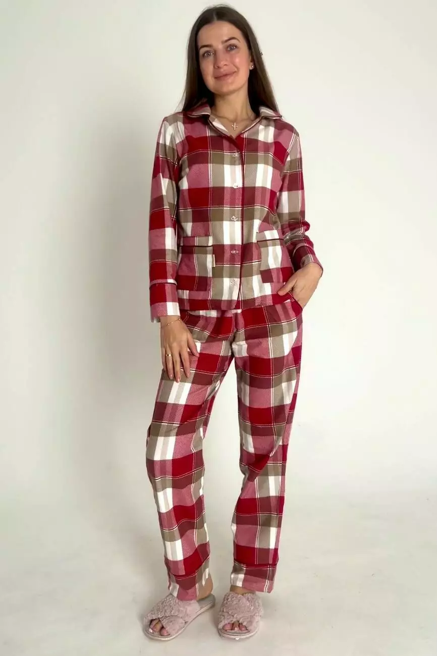 Тепла піжама жіноча П900 Червона клітинка