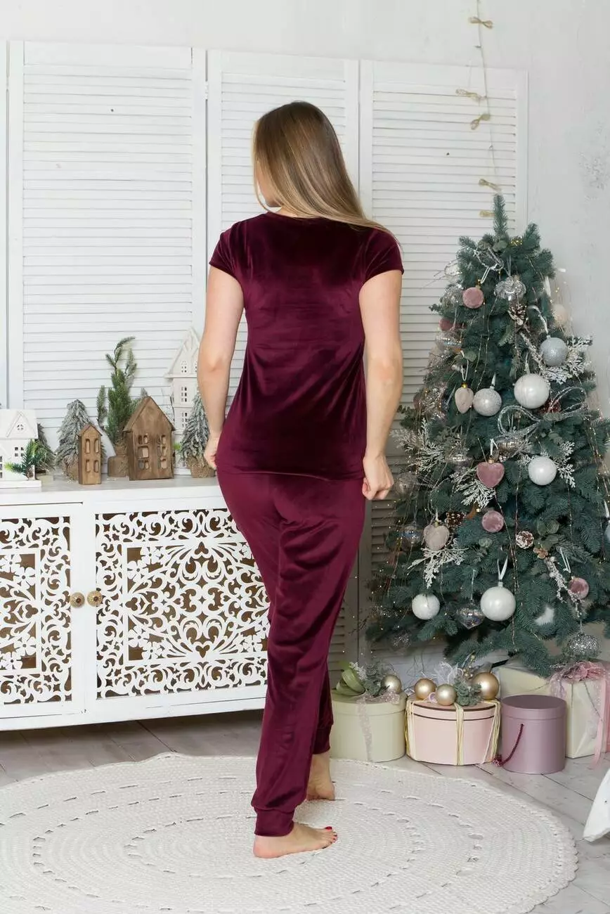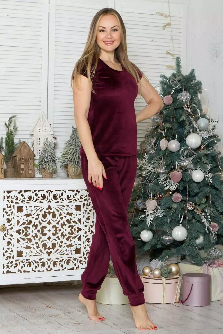Тепла жіноча піжама з велюру Псл1605 Сливовий