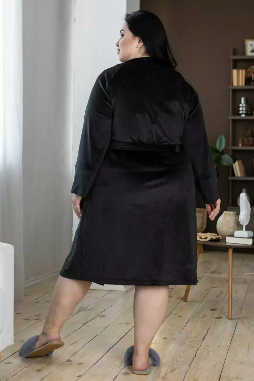 Велюровий халат осінь зима батал Хч1600 Чорний