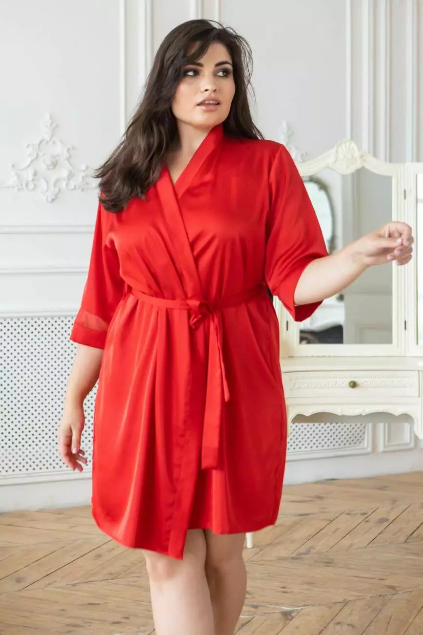 Вишуканий шовковий халат в великих розмірах Хк1092 Червоний