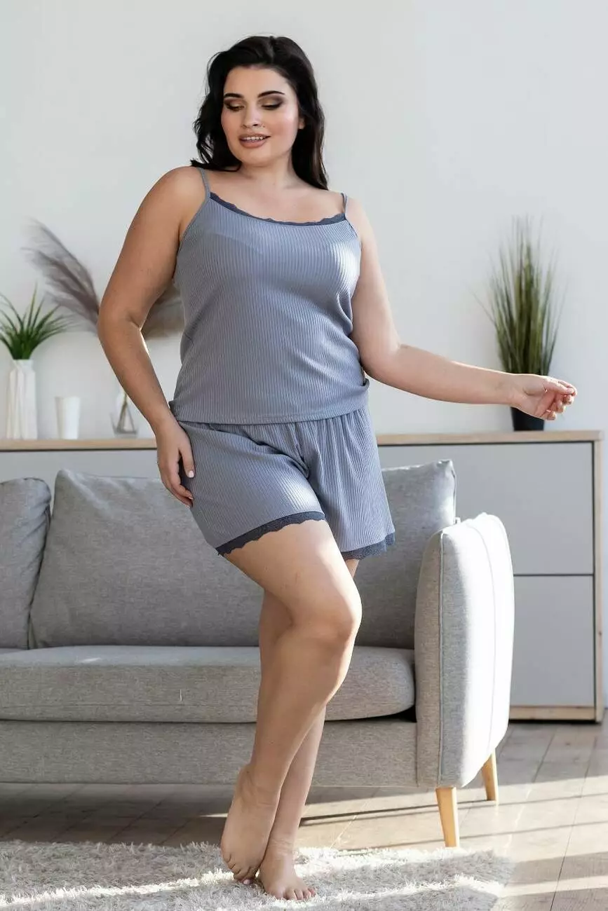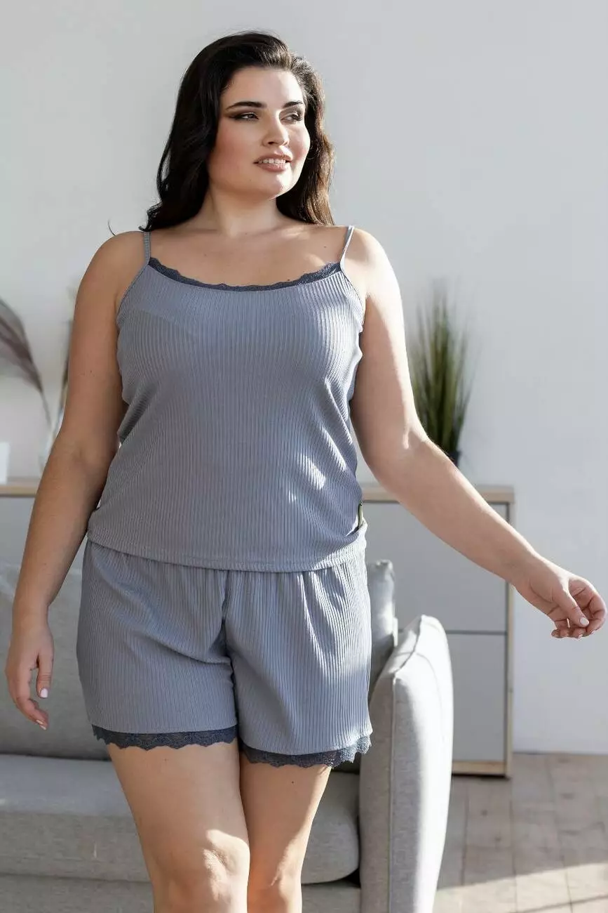 Жіноча піжама в рубчик XXL+ Пс1410 Сірий