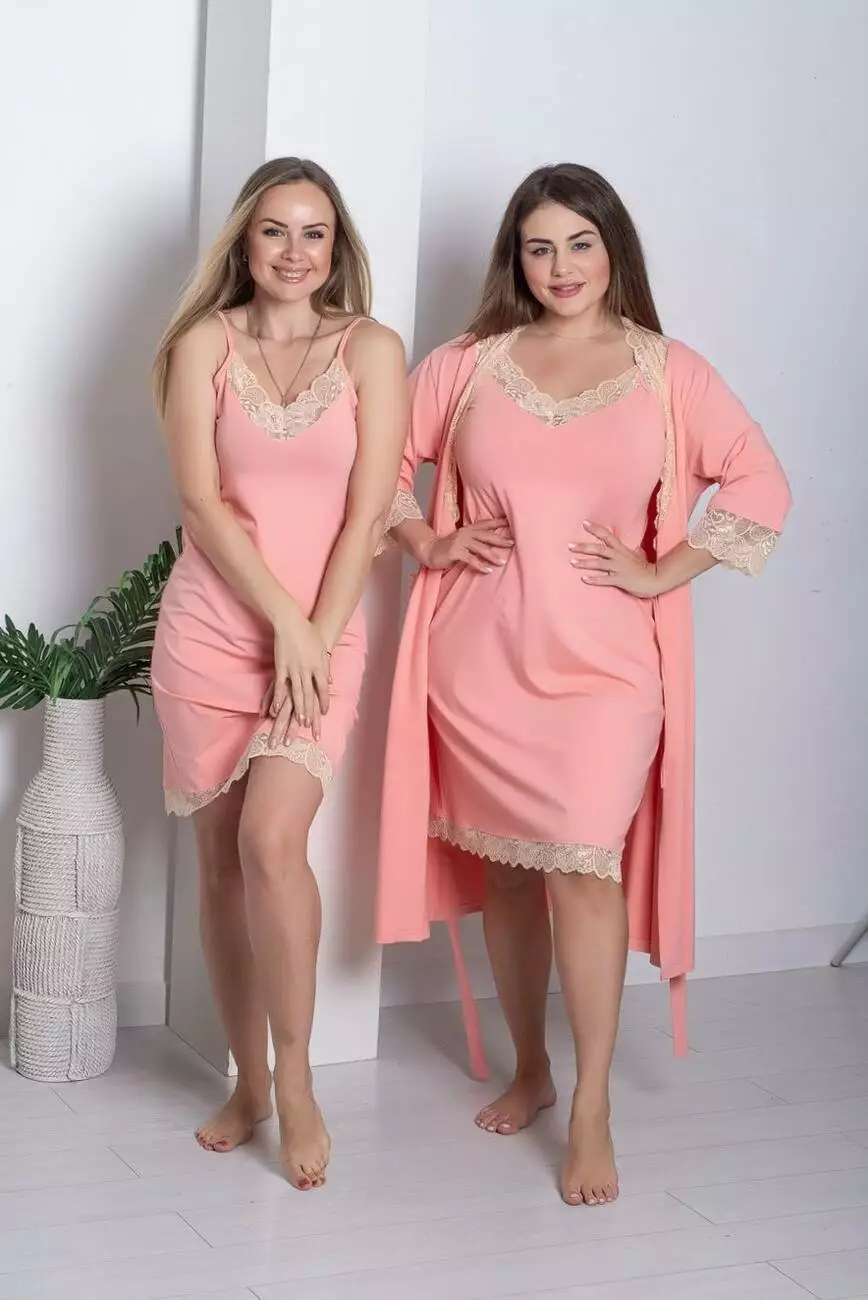 Жіночий халат із сорочкою батал XXL+ Кп1111н Персиковий
